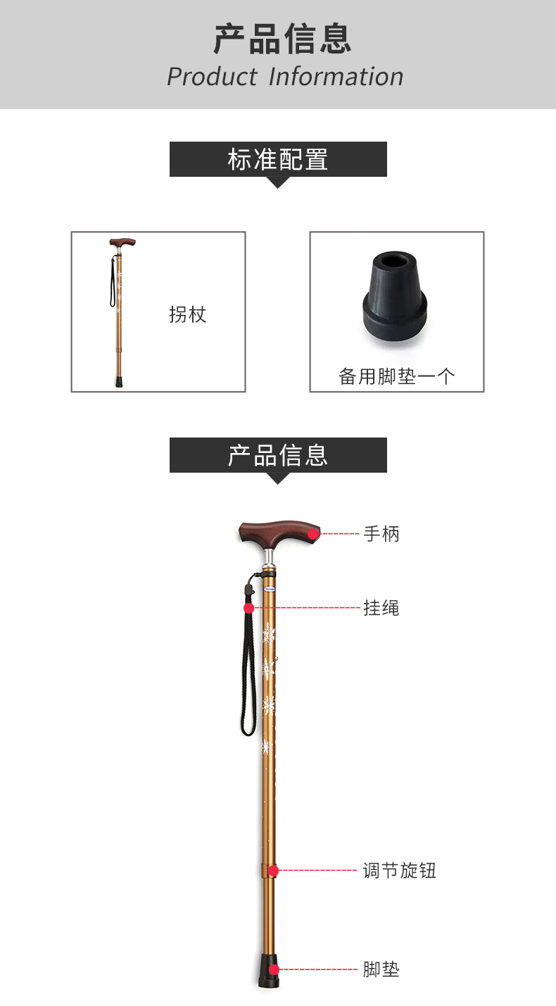 MIKI三贵伸缩拐杖MRT-014红色