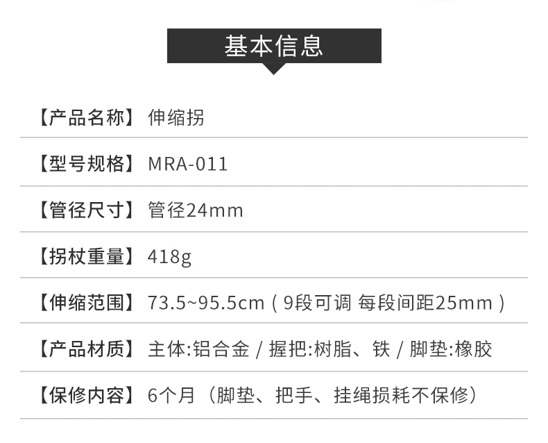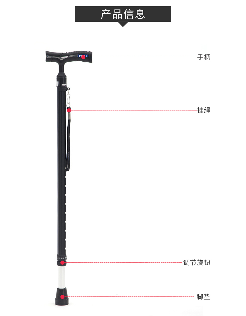 MIKI三贵伸缩拐杖MRA-011粗款 黑色