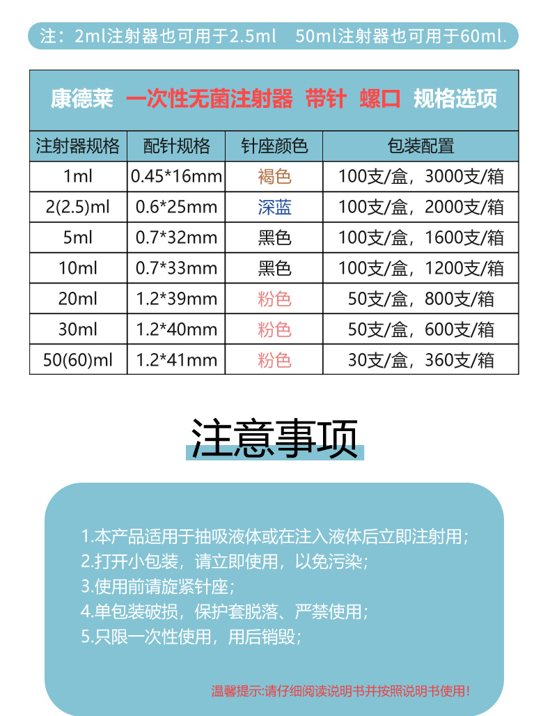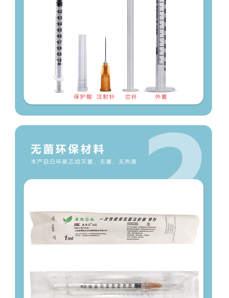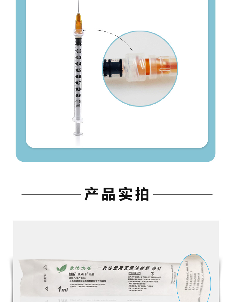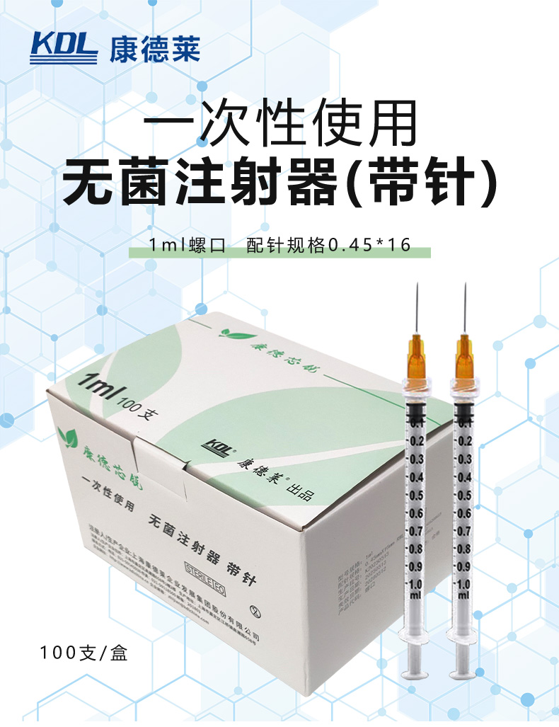 康德莱一次性使用无菌注射器带针0.451ml